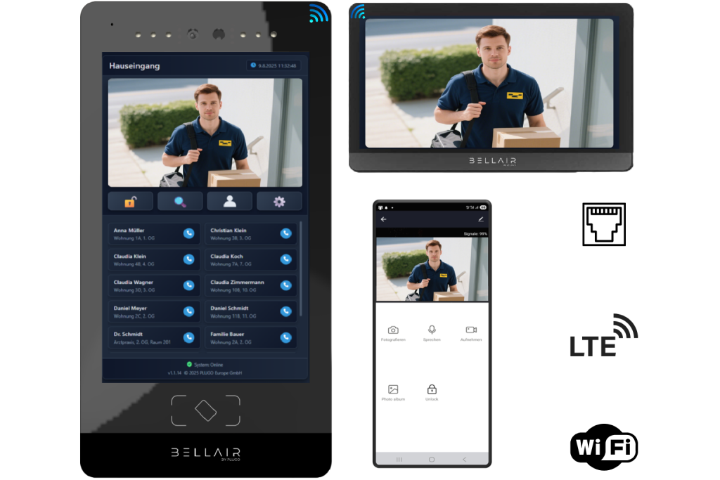 Sehen, sprechen, öffnen – die BELLAIR Innenstation vereint alles auf einem modernen HD-Touchscreen. Klare Bildqualität, einfache Bedienung und schnelle Installation sorgen für Sicherheit und Komfort.